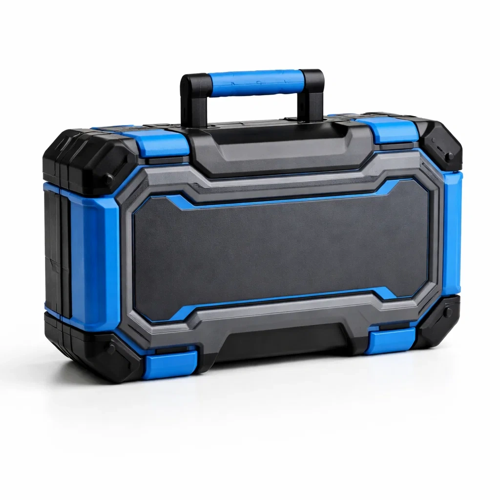 Ce coffre à outils portable est fabriqué en polypropylène solide, offrant résistance et durabilité.